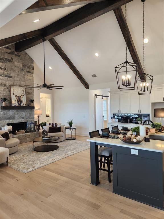 1 Acre Corner Lot. 2441 Sq. Ft. New Construction. Completed. Energy Efficient Foam Encapsulation. Propane Gas, Tankless Water Heater. 2 inch Faux Wood White Blinds throughout. Open Concept. 4 BEDROOMS AND 3 BATHS. 4th Bedroom with Study or office Option, Breakfast Nook. Dining Room. 10' Ceilings. Vaulted Ceiling in Living Room through to Kitchen with Stained Beams. 8' Solid Core doors. Gas Fireplace with Stone Floor to Ceiling and Stained Mantle. Painted Grade Cabinets. Quartz Counter tops through-out. Designer Black Subway tile Kitchen backsplash. Stainless Steel built-in Microwave, Single Oven and 5 Burner Gas Cooktop. Walk In Pantry. Hardwoods in Entry, Nook, Living Room, Kitchen, Pantry, Study, Dining Room and Master Bedroom. C-Tile in Laundry and baths. Carpet in Secondary Bedrooms and closets. Mud-bench. Master Bath - Walk-in double Head Shower, Black Designer Black Slipper Tub, Double Vanities. Sod, Sprinklers, Gutters and Garage door opener. Deed Restricted. No HOA. Fencing is specific to Deed Restriction specifications.