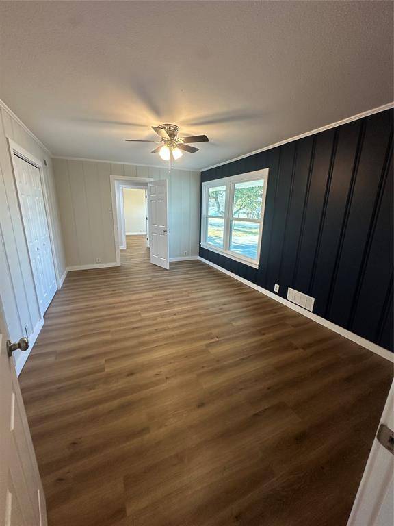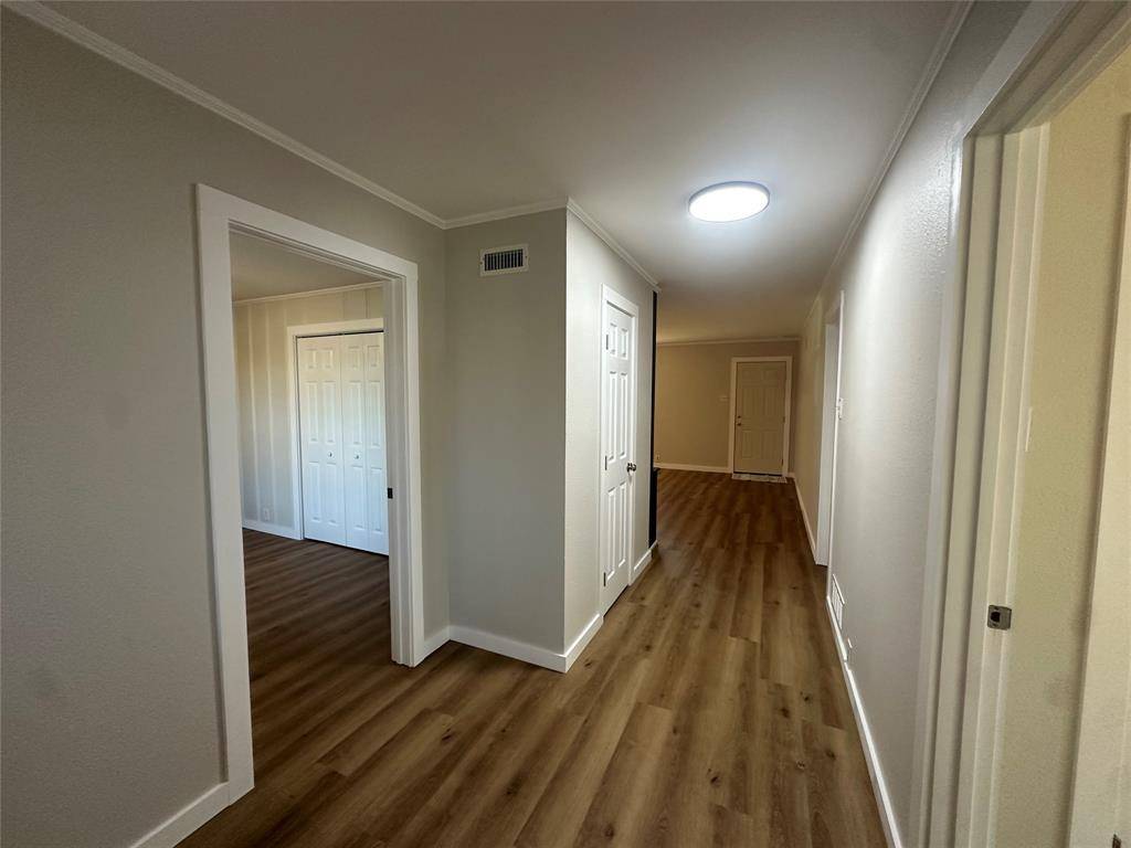 If you are looking for an open concept home with versatile space, here it is. The home is fully renovated. The primary bedroom has his and her closets and an adjoining full bath. The secondary bedroom also connects to the full bath. There is a large room that could be used as an additional bedroom, secondary living space, office, or play room. There is a second full bathroom just outside of this room. The kitchen has granite countertops and stainless steel appliances, refrigerator included. The laundry room is conveniently located and allows for a full sized washer and dryer. The yard is fully fenced and offers a covered patio, extended deck and a storage shed. Available now!