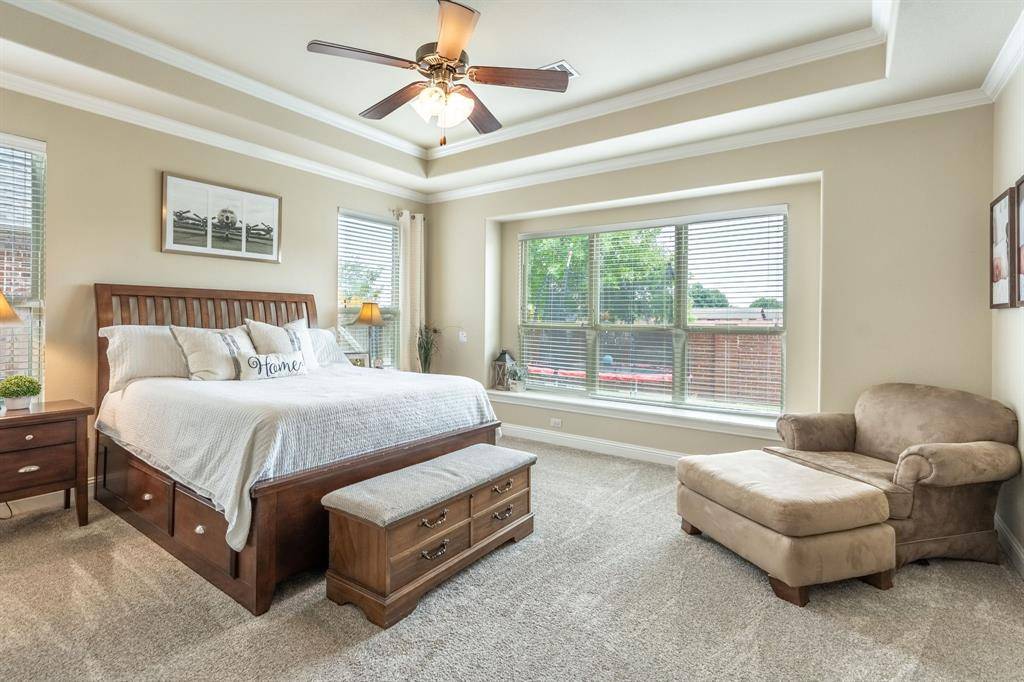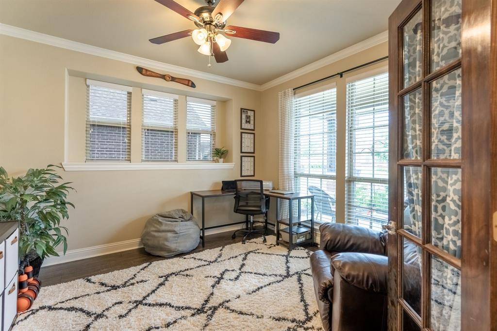 READY TO SELL! This must see 3 bedroom 2.1 bath home has numerous amenities! Great curb appeal makes coming home a welcome sight. The home office or flex room is spacious and convenient when first walking in the front door. The open kitchen and living room areas flow together so no one is left out of the festivities or family time. Plenty of granite counter space with a Butler's pantry area makes entertaining a snap. The kitchen features a gas cooktop with SS appliances and plenty of storage. The split bedrooms features a downstairs primary bedroom with en suite bathroom with garden tub, separate shower and walk in closet. The secondary bedrooms are upstairs and features an upstairs living room. The attic space has been floored for storage. The backyard features a covered patio with a decked side patio that invites family and friend cookouts. This home is move in ready and has been well maintained. This home is cross posted for lease as well, MLS #21167150.