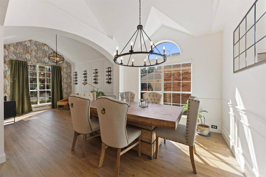 Soaring ceilings and architectural details create visual interest without feeling formal, while modern flooring and light fixtures bring a fresh tone throughout, unfolding with a sense of openness and light.