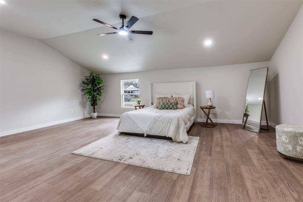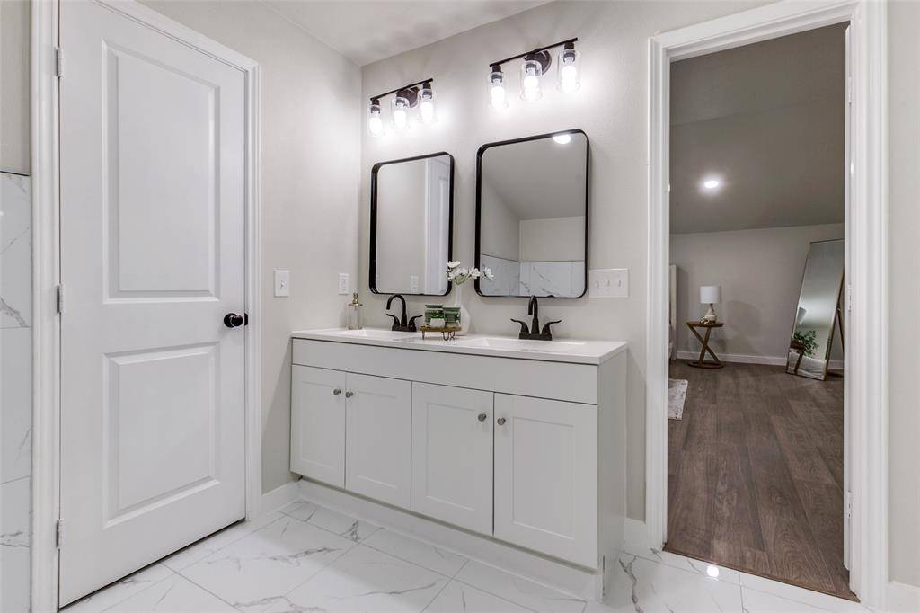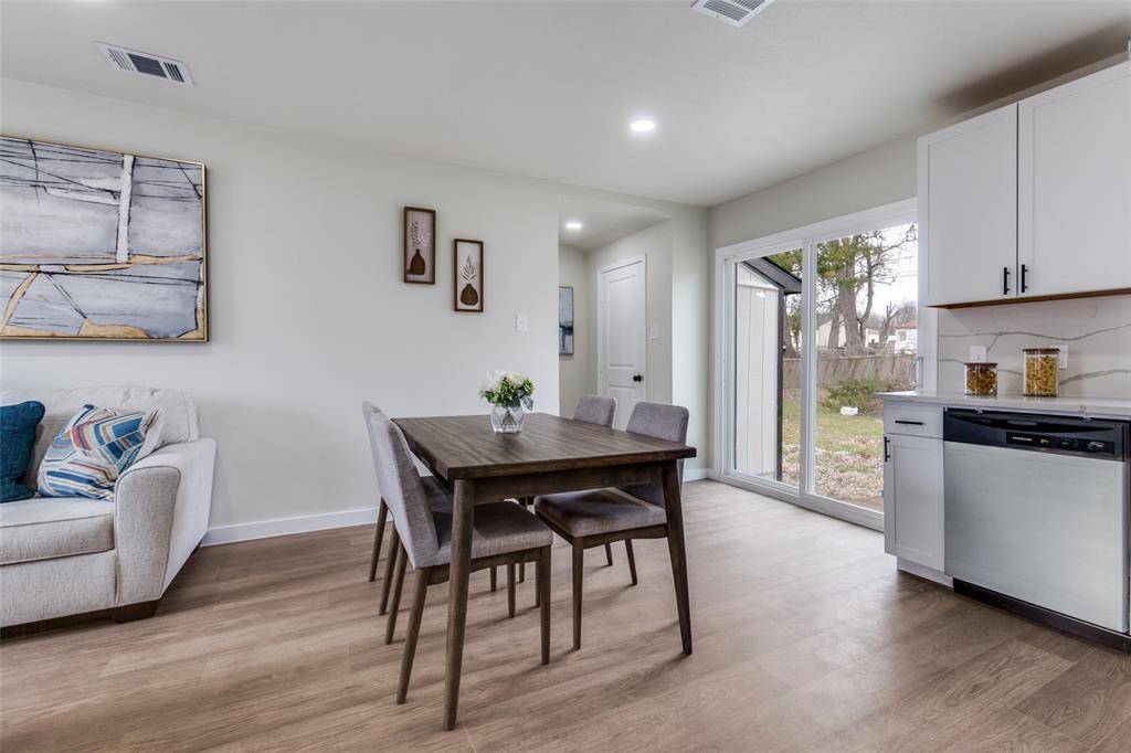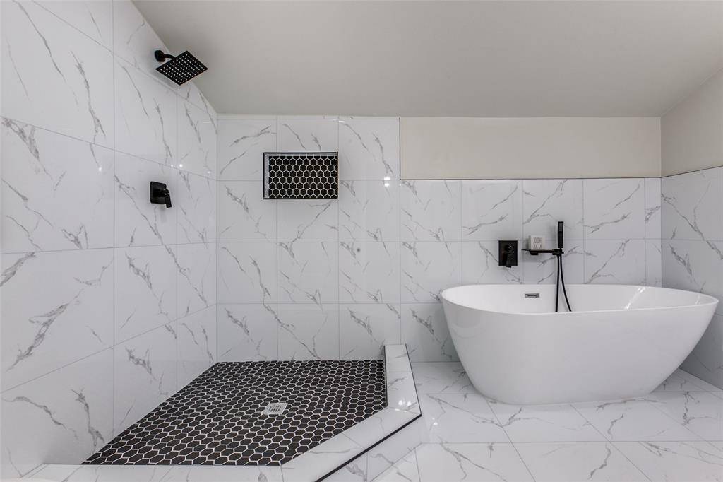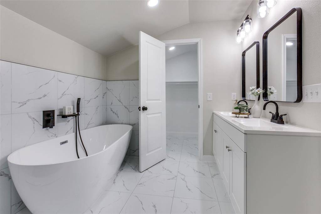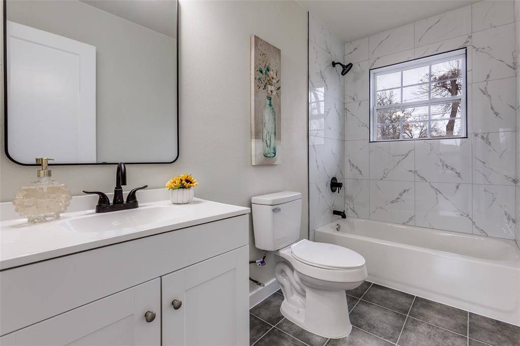 Fully renovated 3-bedroom, 2-bath home blending modern design with everyday comfort. Step into an open-concept living, dining, and kitchen space featuring luxury vinyl plank flooring, fresh neutral tones, recessed lighting, and abundant natural light. The updated kitchen offers white shaker cabinets, quartz-style countertops, stainless steel appliances, matte black fixtures, and a sleek backsplash for a clean, contemporary feel. The spacious primary suite includes a beautifully redesigned ensuite bath with dual sinks, framed mirrors, updated lighting, and a stunning freestanding soaking tub paired with a walk-in shower and modern tile work. Secondary bathroom has also been fully updated with stylish finishes and black hardware accents. Outside, enjoy a large backyard with room to customize, entertain, or expand. With updated finishes throughout and a fresh exterior look, this move-in-ready home offers style, function, and value in one complete package.