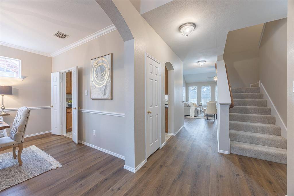 This beautifully updated 4 bedroom, 3 bath home with 2,520 square feet and two spacious living areas sits directly on the golf course, offering both scenic views and an incredible lifestyle. Brand-new luxury vinyl flooring spans the entire downstairs, while plush new carpet enhances the upstairs. Fresh interior and exterior paint give the home a crisp, modern feel throughout. A spacious kitchen features granite countertops, abundant cabinetry for storage, and a breakfast area perfect for casual dining. Generous walk-in closets and ample storage can be found throughout the home, along with updated lighting in the entry and dining areas that adds warmth and style. Upstairs and down, the flexible layout provides plenty of space for everyday living, entertaining, or creating the perfect home office setup. Every detail has been thoughtfully updated, making this home completely move-in ready. Waterview community is located in Rowlett on the western shore of Lake Ray Hubbard and offers an abundance of amenities, making it the ultimate residential playground. Residents enjoy access to a golf course, a clubhouse with a resortstyle pool and water slide, pickleball courts, tennis courts, sand volleyball courts, stocked fishing ponds, parks, and beautiful green spaces. Whether you're entertaining friends, enjoying community events, or relaxing with peaceful golf course views from your own backyard, this home offers the perfect blend of comfort, recreation, and lifestyle. Move in ready. Golf course lot. Prime location!