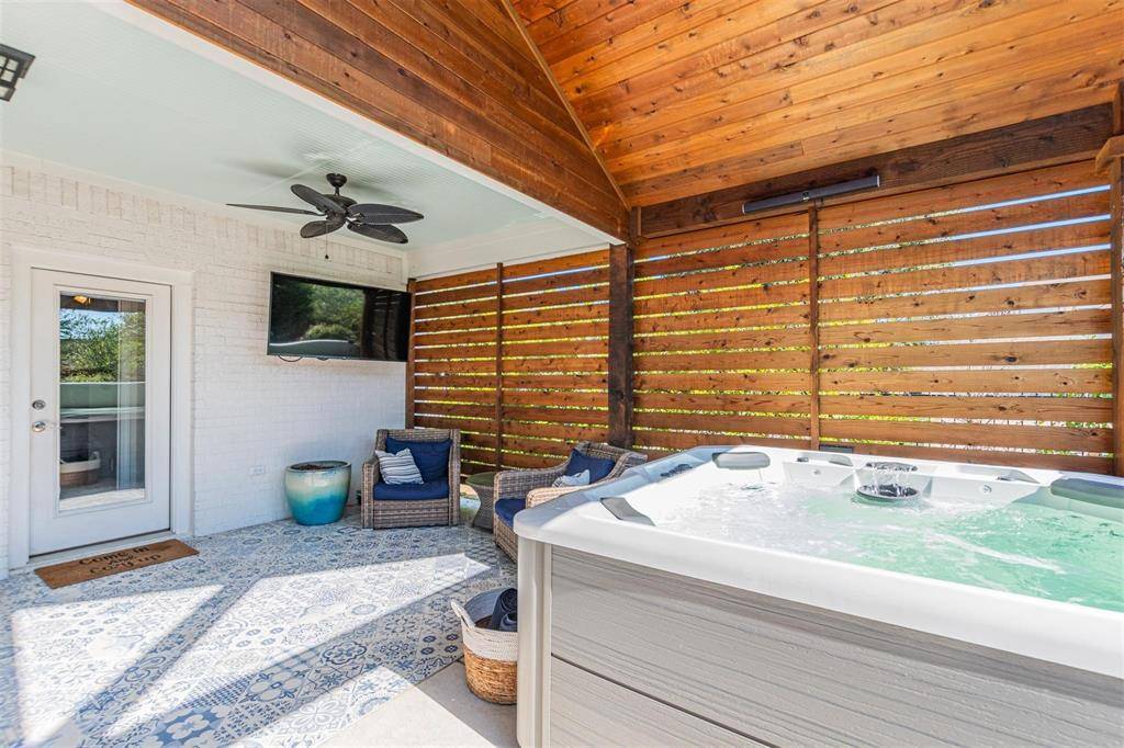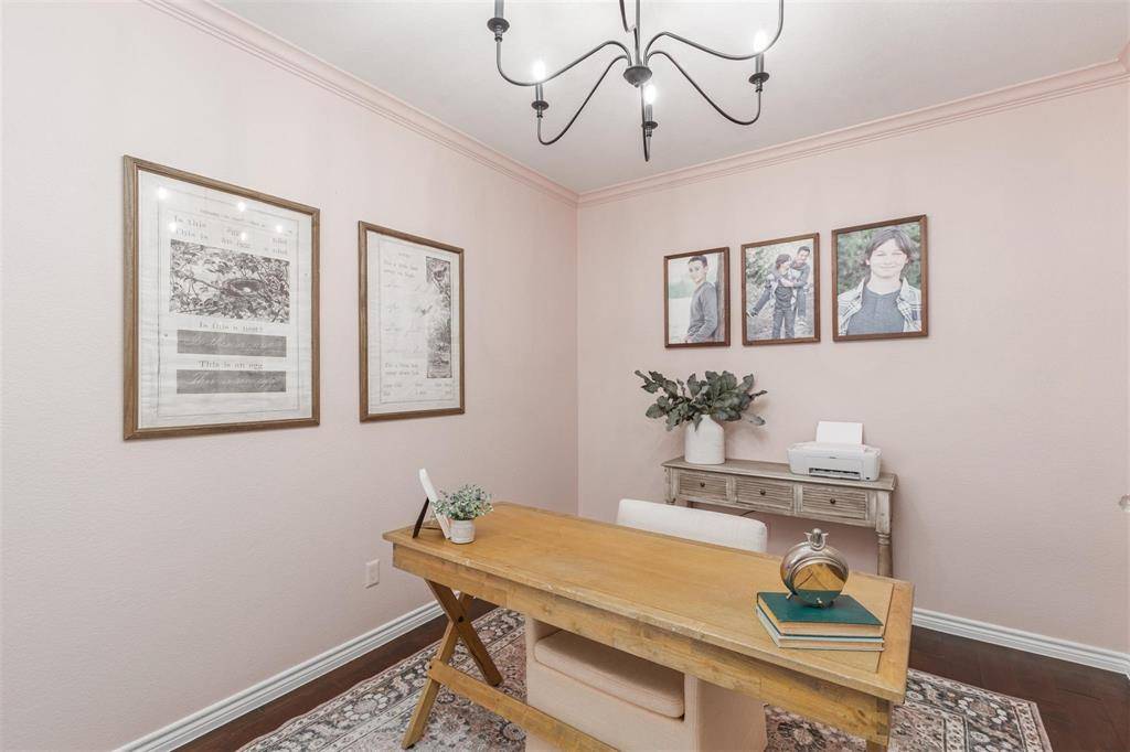 Located in the highly sought-after Parks of Aledo community in Aledo, TX, this beautifully upgraded home offers a versatile layout and exceptional indoor-outdoor living. The open-concept floor plan seamlessly connects the main living area to a gourmet kitchen featuring a gas cooktop, oversized island, stylish cabinetry, and ample prep space — ideal for entertaining and everyday living. A rare and desirable feature, this home includes two primary suites, providing flexible options for guests or multi-generational living. A dedicated front-facing office creates a private work-from-home space. The covered back patio is designed for year-round enjoyment with a built-in outdoor kitchen, ceiling fans, ambient lighting, and a hot tub, creating a seamless indoor-outdoor flow. The backyard offers added privacy and extended entertaining space.