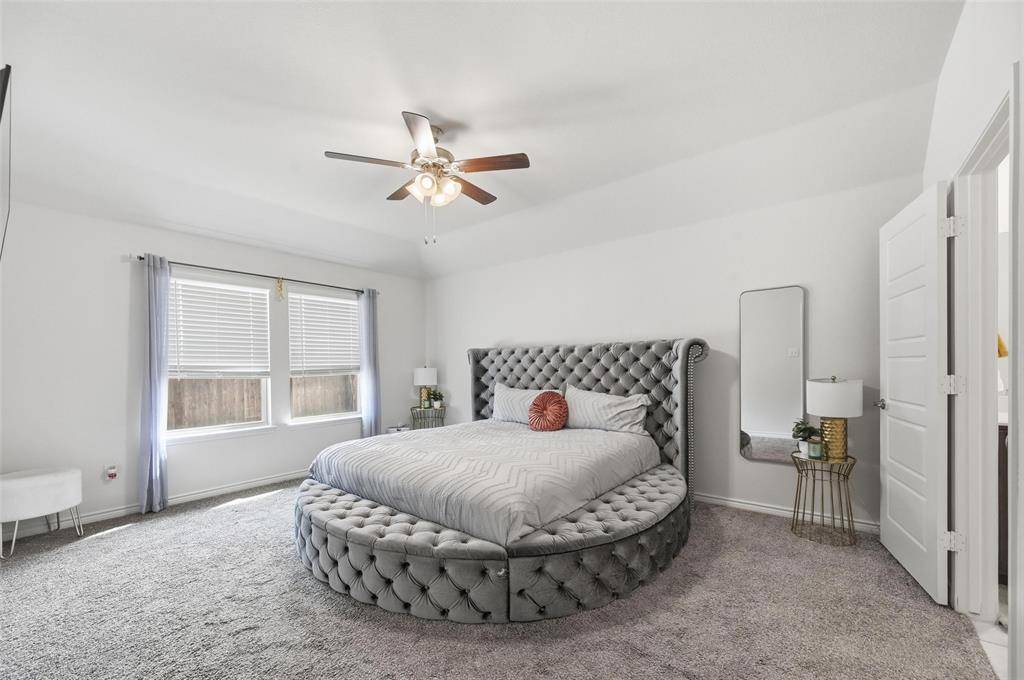 The split master bedroom suite boasts privacy and includes an ensuite bath with an oversized shower, dual vanities along with a walk-in closet. Three secondary bedrooms offer flexibility for children, guests, or a home office.