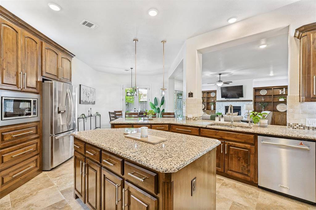Inside, the open layout is designed for both daily routines and time spent together. Hardwood floors, fresh interior paint, and custom built-ins add warmth and function throughout the home. The kitchen is equipped with granite countertops, stainless steel appliances, an island, pull-out drawers, generous storage, and a butler's pantry that helps keep everything organized and within reach.
