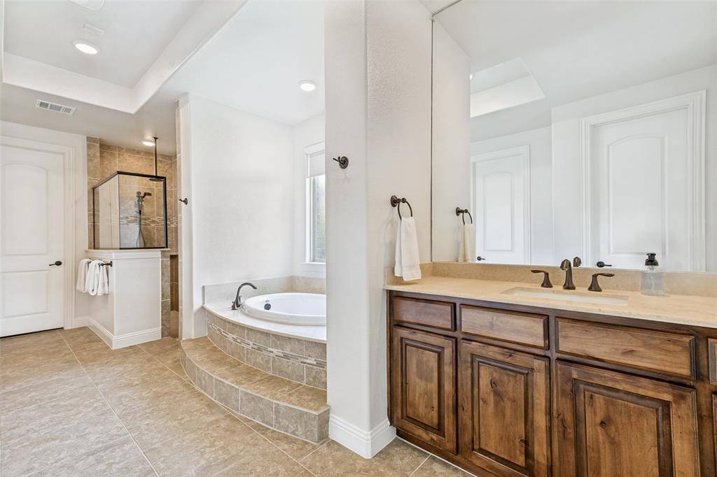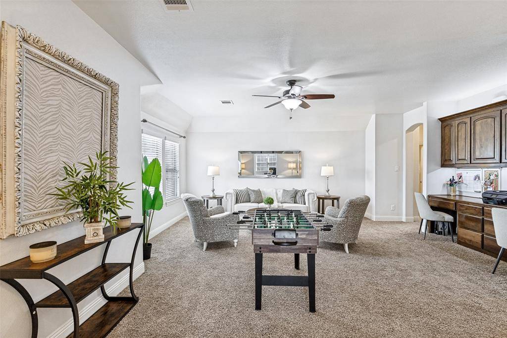A dedicated home office supports work or study from home, while the spacious primary suite overlooking the backyard, with his and her custom closets, offers a comfortable place to reset at the end of the day. The primary bath features a large shower with rainhead, garden tub, and double vanities. The large living room with its stone fireplace creates a natural gathering space, and the upstairs family and media room with built in study desks gives everyone extra room to relax or entertain.